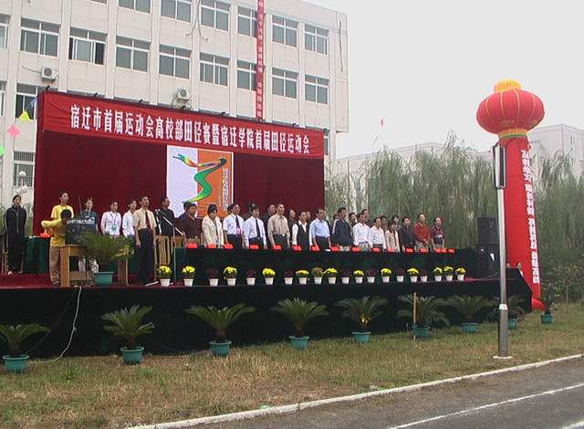 本报讯(记者 刘 峰 文/摄)金色九月,秋风送爽。为期两天的宿迁市首届运动会高校部田径赛暨宿迁学院首届田径运动会,于9月27日隆重开幕。这次田径运动会由学院校本部各系、师范部、电大部组队参赛,240名队员进行了跳高、跳远等24个项目的角逐。比赛中,队员们勇于拼搏,坚韧不拔,积极进取,充分展示了“更高、更快、更强”的奥运精神,充分展示了当代大学生的风采。 (10月6日《宿迁日报》三版刊发新闻组照)