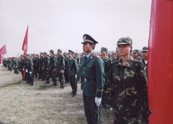 连日严格的集训,新生们都体会到了苦和累的味道。一次训练下来,汗水顺着头流下来,湿了衣衫,但谁都顾不得擦。“腰酸背疼,小腿发麻,累得想睡;集合哨响,挺直腰板,困意全消。”这句话道出了众多新生军训的真实感受。训练中,每个教官都采用了灵活的方式,寓娱乐于训练之中,如篮球友谊赛,文娱表演等,让新生们感觉如同走进了军营,体会军营生活的乐趣。