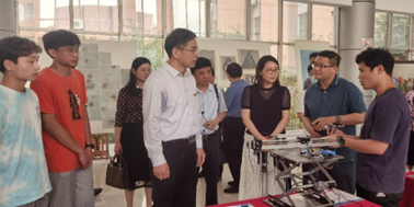 刘志远校长饶有兴致地观看了每一件作品,和参展学生进行了交流,肯定了学生的成果。他要求教务处认真做好毕业设计(论文)工作,把毕业设计(论文)与创新创业教育结合起来,跨学院、跨专业组建毕业设计团队,加大经费投入,重点培育科技创新型毕业设计项目,提高毕业设计质量,为参加各级各类创新创业大赛奠定基础。