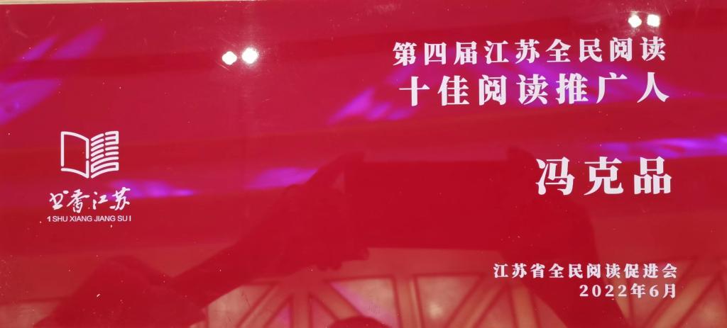 日前,我校图书馆冯克品老师被评为“第四届江苏全民阅读十佳阅读推广人”。