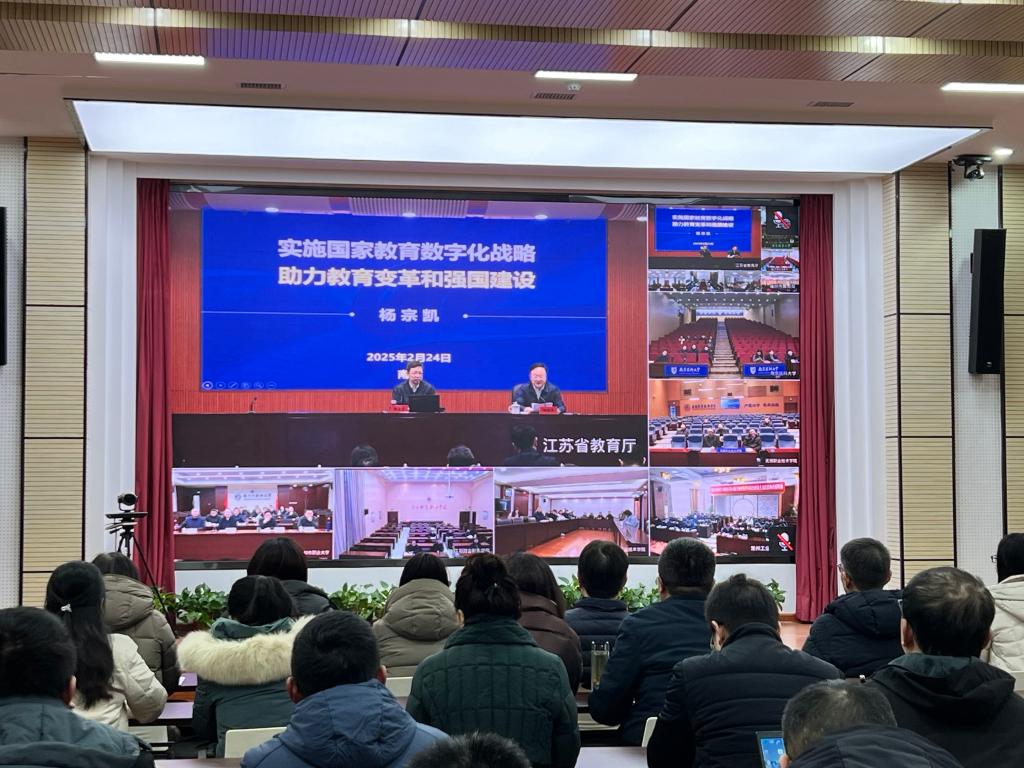 2月24日上午,由江苏省教育厅主办的教育数字化专题报告会在南京举行,省教育厅副厅长杨树兵主持会议。我校在学术报告厅设分会场,校领导潘志明、郭照冰、陆海霞,相关职能部门、二级学院领导以及基层教学组织负责人等70余人分会场收看。