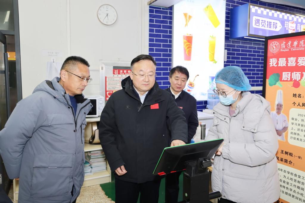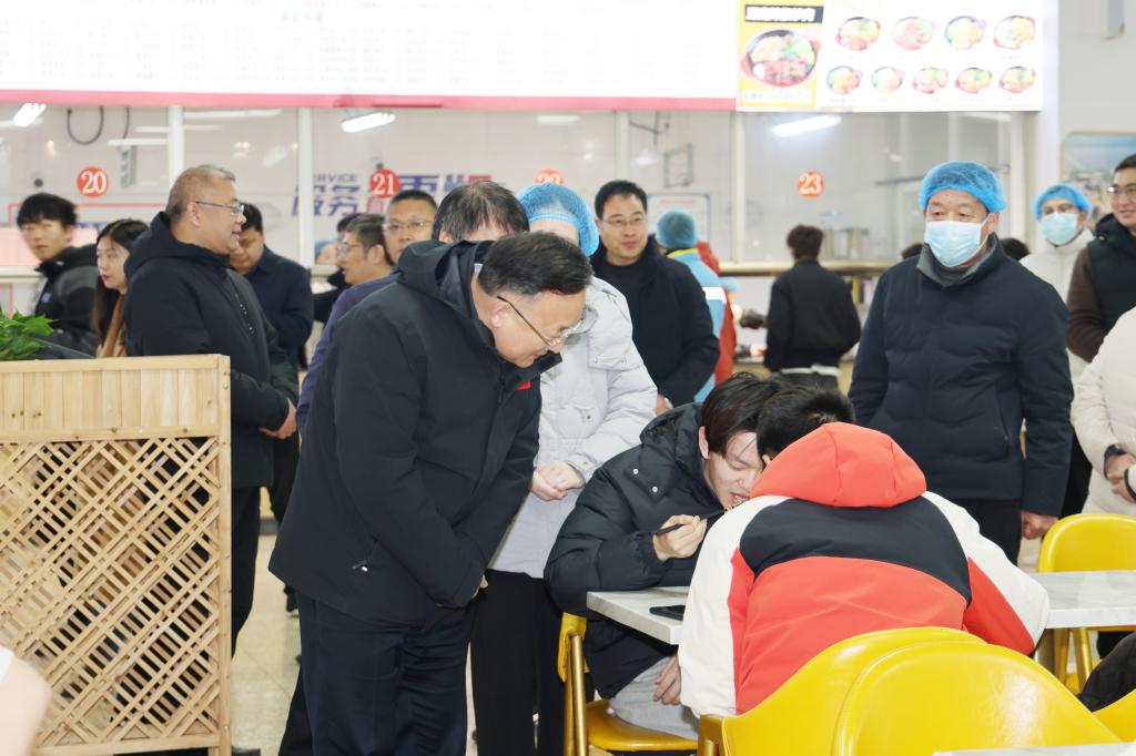 杨树兵一行先后查看了学校警务室、监控室、学生食堂、学生超市等重点场所,详细了解了校园安全日常工作、制度建设、应急处置等方面的具体措施。杨树兵指出,要提高政治站位,牢固树立“安全第一”思想,高度重视校园安全稳定工作,以“时时放心不下”的责任感绷紧校园安全弦,切实落实校园安全主体责任;要强化科学统筹,在人防、物防、技防等方面持续加大投入,充实力量配备,强化门卫值守、内部巡查,严防无关人员和危险物品进入校园,确保各项要求得到有效落实,切实守好校园安全底线;要突出工作重点,建立健全安全隐患排查、风险预警监测机制,将校园安全、安全教育工作融入日常教育教学工作,采取强有力措施保障校园安全稳定。