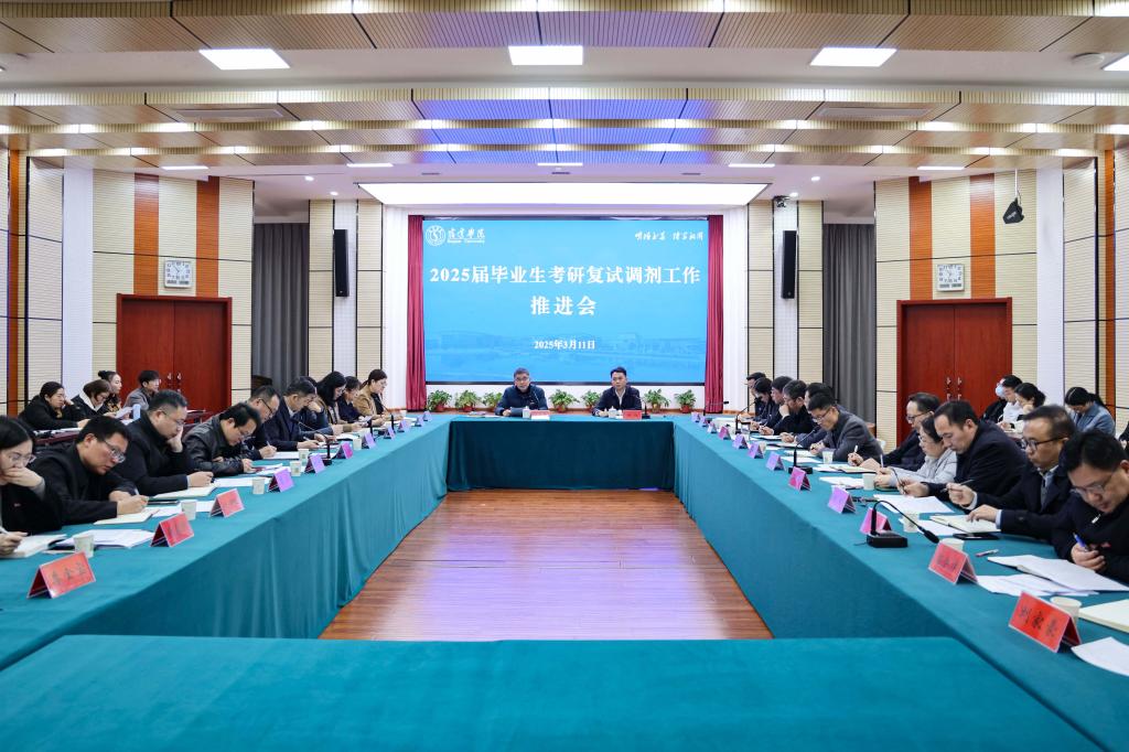 就做好2025届毕业生考研复试调剂工作,潘志明提出三点工作要求:一是思想上要高度重视,全校上下特别是二级学院院长要亲自挂帅,将学生考研指导服务作为当前最重要的工作,持续擦亮学校的人才培养品牌;二是措施上要精准细实,要实现指导服务全覆盖和过程全跟踪,不断优化提升措施的精准度;三是工作上要形成合力,考研工作是一项全校层面的工作,需要加强协同、资源共享,形成工作合力,学工处等相关职能部门要做好考研学生的心理调适和生活学习等方面的服务保障,要协同各学院加强信息互通和调剂经验共享。