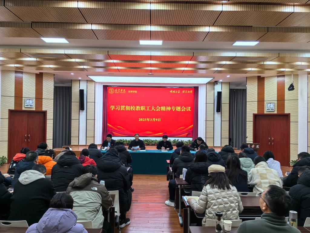 2025年是我校争取硕士学位授予单位的决战决胜之年,也是落实“三步走”发展战略承上启下的关键一年。校春季教职工大会后,体育学院迅速行动,通过召开领导班子专题会、条块工作座谈会及全体教职工大会等多种形式,深入学习校春季学期教职工大会精神,提高思想认识,明确目标责任,继续保持进位争先干劲,积极谋划新学期工作,为学校高质量发展贡献体院力量。