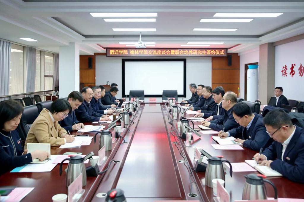 会上,宿迁学院与榆林学院正式签订了两校联合培养研究生协议;参会人员围绕产业学院、师资队伍、人才培养、访企拓岗等方面展开了深入交流。
