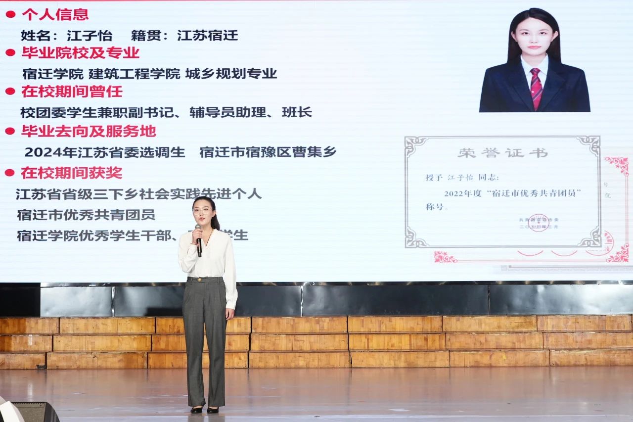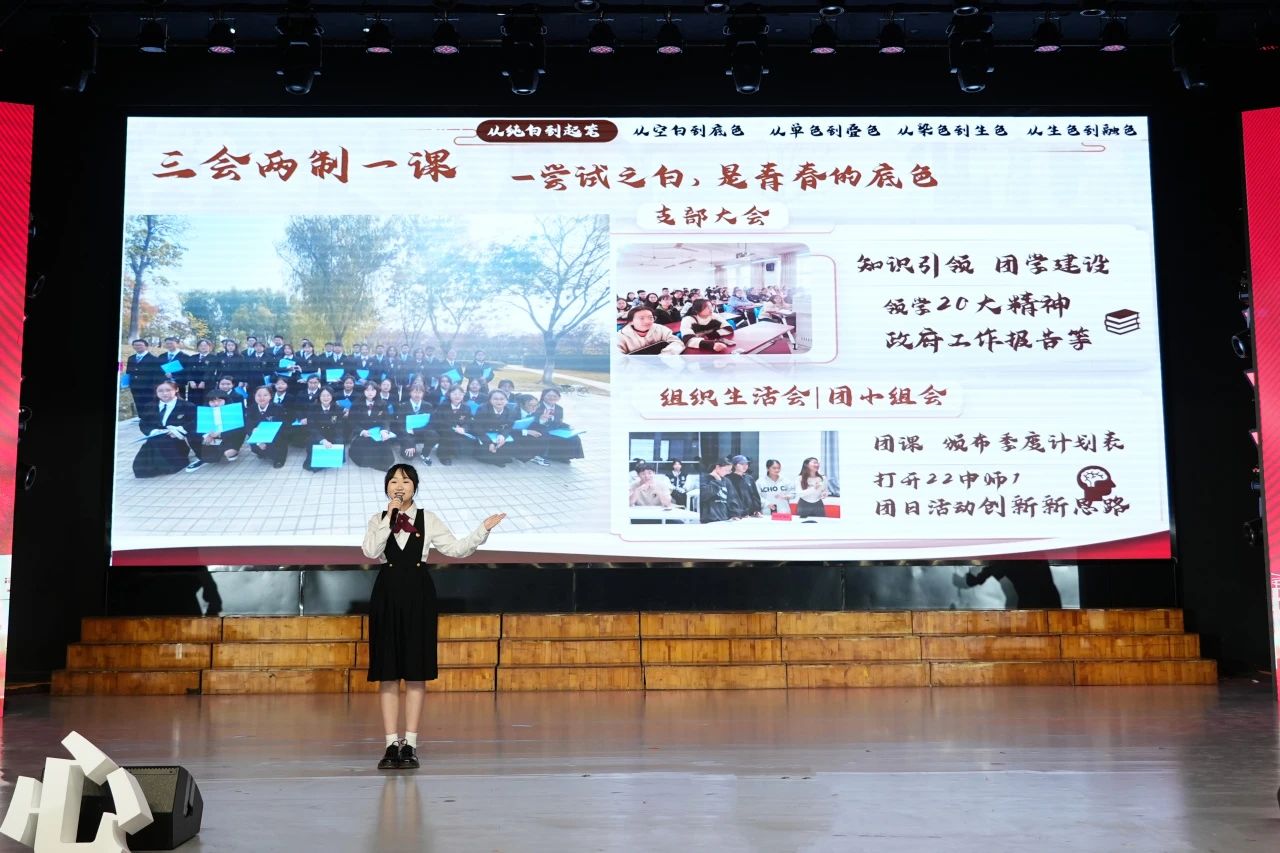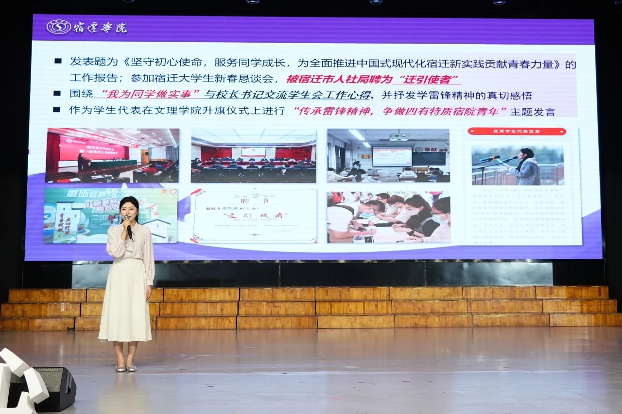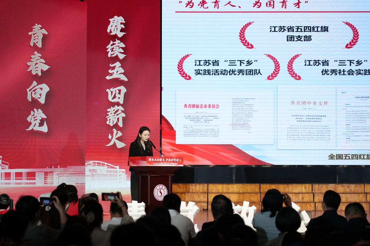 使命在前,时不我待。榜样宣讲中,西部计划志愿者吉嘉、张佳燕和省委选调生代表江子怡3位优秀校友代表,通过视频连线与现场分享,讲述在新疆叶城县基层岗位的志愿服务故事和扎根宿迁大地实现人生目标的青春奋斗历程;荣获“全国五四红旗团支部”的外国语学院分团委分享了做好基层团组织建设经验;全国自强之星获得者谢明娟分享了个人成长成才的奋斗历程。22中师1班团支部丰富多彩的集体学习生活展示,彰显了活力团支部的蓬勃生机。