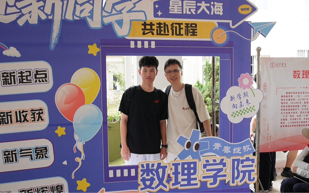 第一次踏上宿迁土地的张皓博,在数理学院报到时收获了满满的暖心惊喜。“志愿者特别热情,全程陪着我办手续、领物资、熟悉环境,原本的陌生感一下子就没了。”他笑着为学校的迎新服务点赞。为帮助新生和家长快速融入,数理学院精心策划了“打卡集章游校园”活动,这让张胜春夫妻格外动容——早在拿到录取通知书时,他们就翻出珍藏的老照片,一边指着照片里的场景,一边给孩子讲述校园里的一草一木,如今跟着打卡路线行走,仿佛把过往的故事搬进了现实。谈及未来规划,张皓博眼神坚定:“大学生活是我新征程的开始,我已经把考研定为未来四年的奋斗目标,要在这里好好沉淀自己,不辜负这份缘分。”
