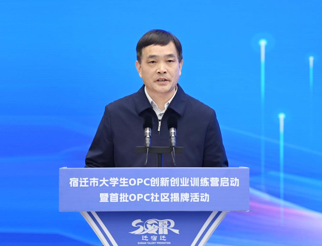 刘浩指出,宿迁坚持投资于年轻人,每年引进4万名左右青年才俊扎根逐梦。此次举办OPC创新创业训练营,就是要在时代的潮头搭建前沿舞台,把每位学员的梦想摆在C位,量身定制指导方案,倾力给予政策支持,帮助更多的年轻人在宿迁创造属于自己的奇迹。希望大家积极拥抱“单人成军”的时代机遇。顺应时代潮流、抢抓AI机遇,把宿迁作为“起锚地”“大本营”,借助完备的生态和优质的服务,开启个人的创业旅程。宿迁将聚力打造OPC创业空间矩阵,提供“拎包入住”的低成本空间,把企业注册、法律财税、政策申报等服务送到“家门口”,竭尽全力让创业零成本、全程无负担、遇到问题零忧虑。希望大家努力练就“玩转AI”的硬核本领。以这次训练营为契机,培养“AI思维”,学习“AI技术”,深入把握算法的逻辑、数据的处理,成为应用人工智能的“行家里手”。宿迁将接续不断提供培训支持,开发模块化、阶梯式、实战型课程体系,通过专家授课、创业实践、项目路演等多种方式,答疑解惑、悉心辅导。希望大家勇于创造“比肩巨人”的梦想奇迹。保持定力、久久为功,练就独门武功,走出一条“专精特新”之路。宿迁将全力打造近悦远来的生态、提供“真金白银”的支持、营造幸福满满的生活,搭建OPC成长舞台,实现OPC创业公共服务平台“伴你左右”,OPC工具栈“随手可用”,算力券、模型券“按需定制”。希望大家成为宿迁“跨越赶超”的新生力量。以AI为翼,长成参天大树,成为宿迁“城市合伙人”,和我们一起打拼更加美好的人工智能未来。宿迁将以数智新城建设为引领,统筹布局全链条具身智能、多模态数据模型、一体化算力体系,全面培育“千行百业+智能终端”应用场景,为年轻人成长进步厚植肥沃土壤。