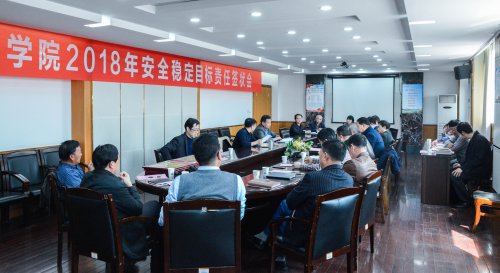 3月28日下午,我校在行政楼二楼会议室召开2018年度安全稳定目标责任签状会。副校长施正荣、校党委副书记李震、副校长孙以泽出席会议,各二级学院院长、各部门负责人参加会议。