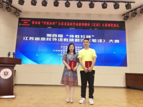 日前,在江苏省教育厅主办的第四届“外教社杯”江苏省高校外语教师翻译(笔译)大赛中,我校外国语学院刘彬老师荣获本科组二等奖,陈京京老师荣获本科组三等奖。