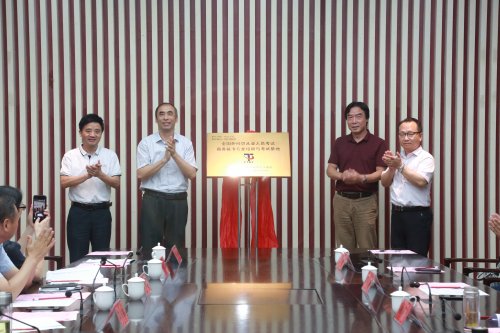 顾晓虎书记和郑樑副会长等为全国商务秘书专业培训与考试基地(宿迁学院)揭牌。