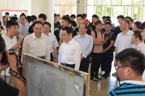 张爱军书记一行考察了机电工程学院实验室、建筑工程学院实验室、学生会和志愿者活动中心、大学生小微学习组织活动和求索楼学生自学现场,并与师生亲切交谈。