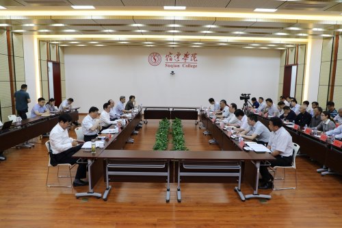 张爱军书记强调,宿迁学院处于新的发展的腾飞期,要以更宽视野、更高目标和更严的担当谋划和推进发展。市委市政府对宿迁学院发展充满期待和信心。他要求,推进宿迁学院又好又快发展,要深入学习贯彻习近平新时代中国特色社会主义思想和全国全省教育大会精神,做到“六个坚持”,一要坚持党的全面领导。加强党的政治建设、思想建设、组织建设等,牢牢把握意识形态工作的主动权。不断加强领导班子、教师队伍、学生的思想政治工作,增强“四个意识”和“四个自信”。二要坚持教育的优先发展。优先规划教育,市委市政府对宿迁学院的体制机制创新、人才队伍建设、基础设施建设、产教融合发展等方面将继续给予大力支持。三要坚持以人民为中心。以服务人民为导向,站稳人民立场,努力办人民满意的学校。专业设置和发展方向要突出特色,符合经济社会发展需求。四要坚持改革创新。进一步更新教育观念,深化改革,用更新的技术、方法、模式等深化校企融合,让学生更靠近科技和产业前沿。五要坚持依法治教,加强学校安全管理。注重政治安全、人身安全、食品安全等。要帮助学生扣好人生的第一粒扣子。希望学校一如既往依法治校,把学校办好,为社会文明建设做出新的贡献。六要坚持统筹协调。深化全市一盘棋思想,统筹教育与经济社会发展,统筹本科教育与高职高专和中等职业教育发展。他强调,宿迁学院处在发展的新方位,要肩负新的使命,更好推进政校合作,共创美好未来。
