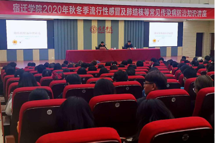 为有效预防和控制常见传染病在校园的传播与流行,进一步增强师生对传染病的防控意识,切实保障广大师生的身体健康,11月4日下午,后勤处联合学生处在新图书馆报告厅组织开展校园传染病防治知识专题讲座。特邀南京鼓楼医院集团宿迁市人民医院感染科专家邵花平主任医师,专程来校作“秋冬季校园流行性感冒及肺结核等常见传染病防治知识”讲座,师生代表500余人聆听报告。