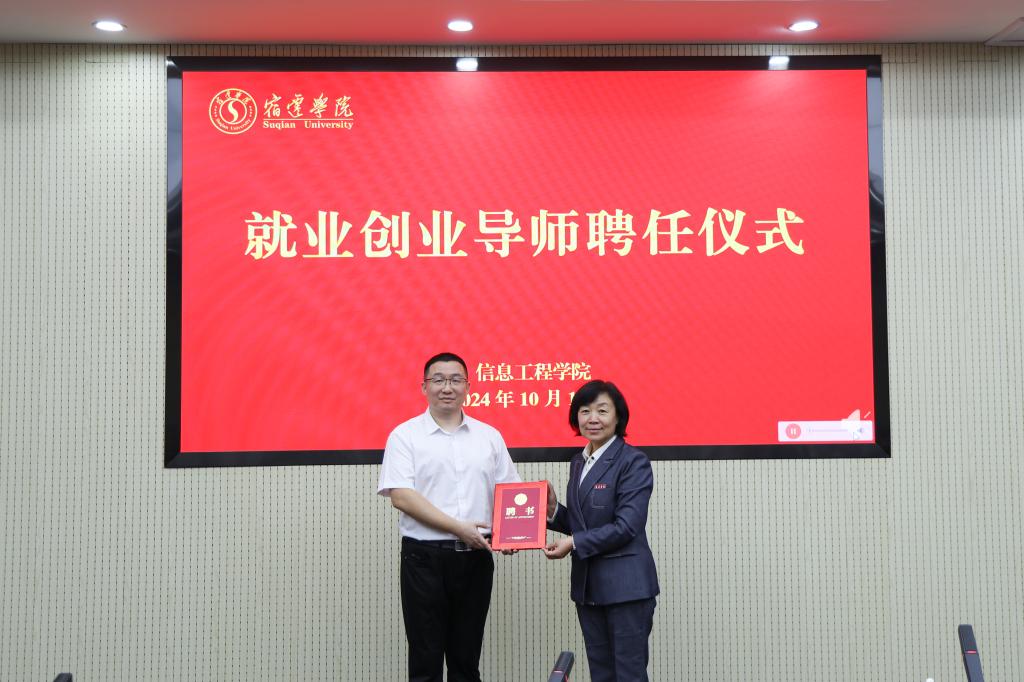 会上,张岩为张阳颁发了信工院就业创业导师聘书。她简要回顾了宿迁学院及信工院与华为技术有限公司不断推进校企合作的历程,重点介绍了华为&宿迁学院现代产业学院、华为班成立以来开展的各项工作、取得的明显成绩以及在长三角地区产生的良好影响,强调了华为技术有限公司为中国科技发展带来的荣光、给宿迁学院及信工院发展和学生培养带来的有力支撑。