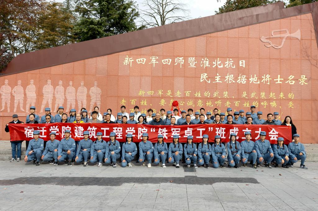 为培养适应建筑业转型升级需求的高素质工程技术人才,全面提升卓越工程师的自主培养质量,11月9日,建筑工程学院组织师生赴泗洪县大王庄党性教育基地举行“铁军卓工班”成立大会。宿迁市新四军研究会副会长赵连军、学院党委书记郭振宇、院长朱方之、党委委员倪春艳、教师代表、“铁军卓工班”全体同学及导师参加活动。