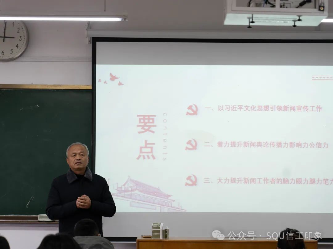 为加强新闻宣传队伍建设,高质量推进新闻宣传工作,12月4日,信息工程学院举办“新闻写作和摄影技能”培训班。信工院办公室主任曹志成为辅导员和新媒体中心同学授课。