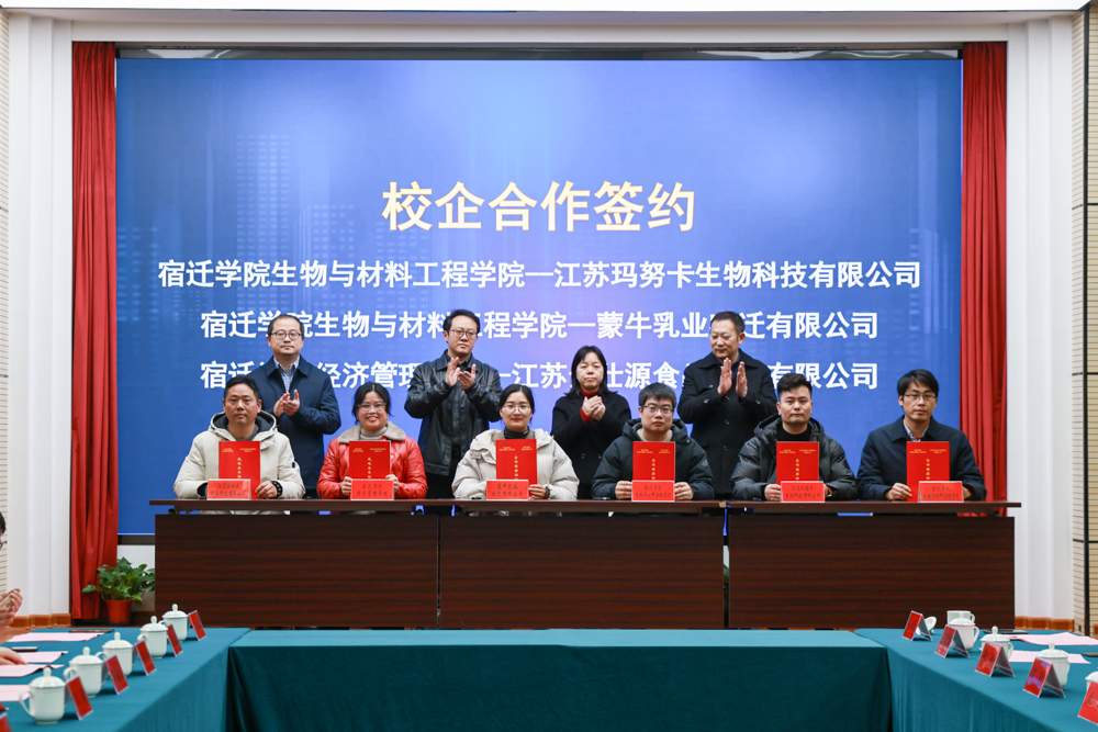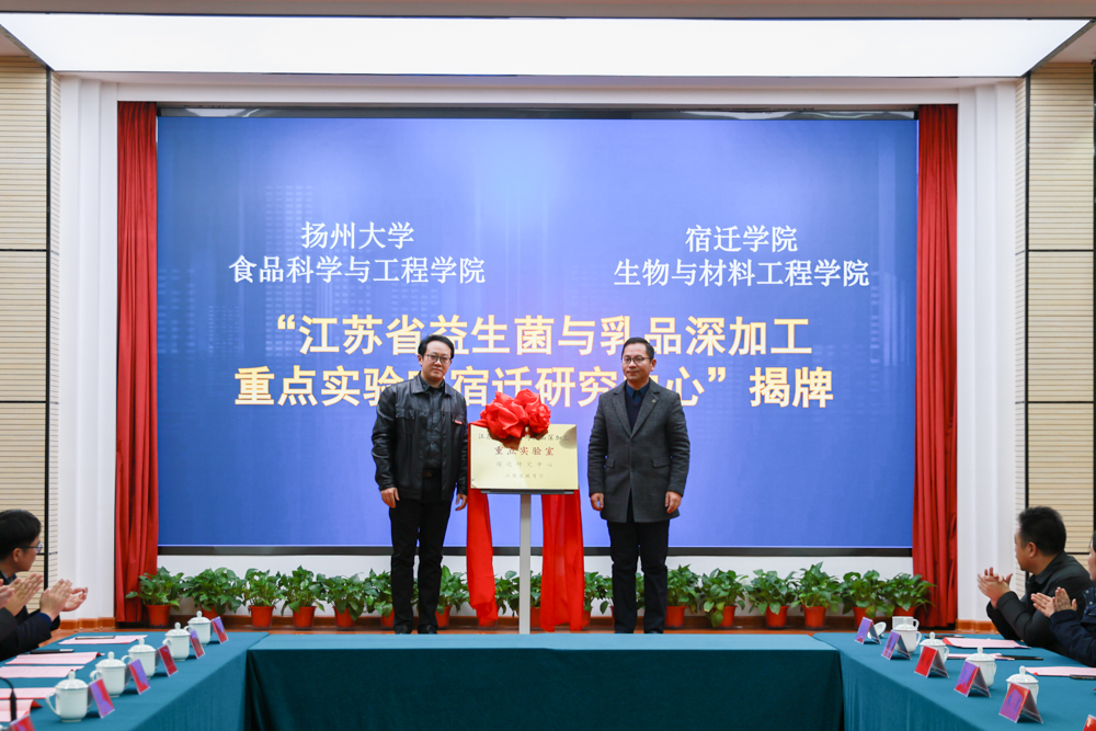 会上,“江苏省酿酒原粮智慧生产与数字技术重点实验室”和“江苏省益生菌与乳品深加工重点实验室宿迁研究中心”揭牌;扬大食品科学与工程学院和我校生材院签署战略合作协议;生材院与江苏仙之宝食品有限公司、江苏乾隆江南酒业股份有限公司等9家企业签署合作协议;经济管理学院与江苏金仕源食品科技有限公司签署合作协议。