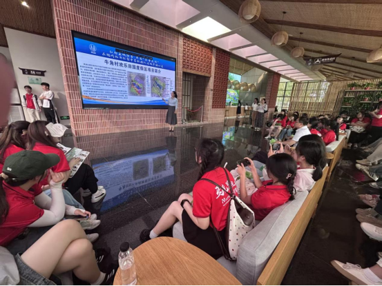 走进牛角社区,党总支书记吴沅锴为师生们介绍社区从新旧、文旅、居产、法治“四个融合”建设新农村的实践创举。