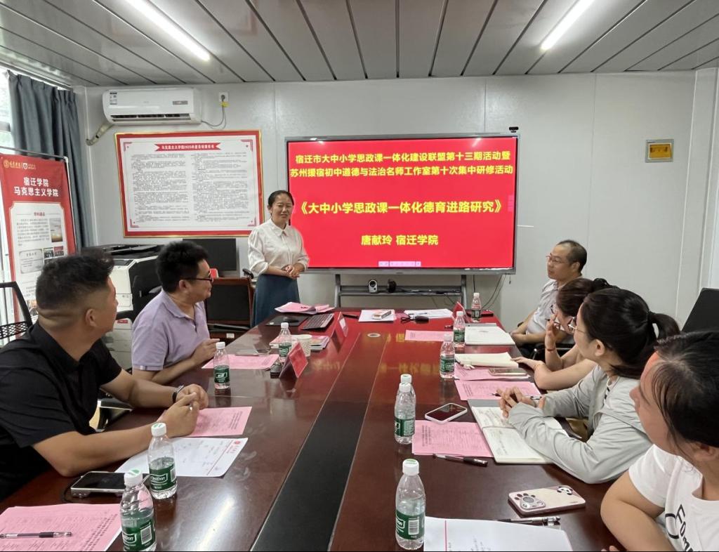 7月30-31日,宿迁市大中小学思政课一体化建设联盟第十三期暨苏州援宿初中道德与法治名师工作室第十次集中研修活动在我校顺利举行。校党委常委、宣传部部长李明建,南京师范大学附属中学宿迁分校学院路校区校长助理张锋出席活动。我市思政领域名师工作室与思政课教师代表20余人参加活动。
