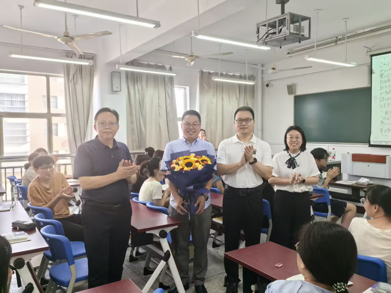 9月10日,院领导走进多间教室慰问一线教师代表并送上鲜花。他们向授课教师们致以节日的问候,感谢教师们为学院做出的贡献,希望他们坚守育人初心,用专业和热情点亮学生的成才之路。