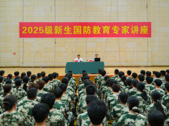 9月7日晚,我校在体育馆举行2025级新生国防教育专题讲座,邀请江苏省新四军研究会常务理事、宿迁市人民政府教育顾问孙其松为新生开展国防教育,人武部部长毛广主持讲座。
