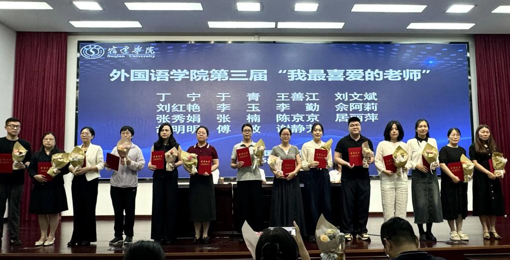 副院长詹慧芳传达了学校全体教职工大会的精神,引导全体教职工将思想与行动统一到学校发展部署上来;副院长王善江宣读了《关于表彰外国语学院2025年度“三育人”工作先进集体和个人的决定》《关于表彰外国语学院第三届“我最喜爱的老师”的决定》并现场颁奖。