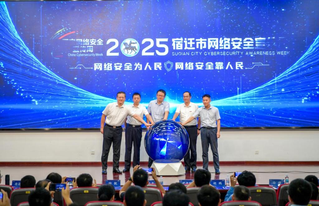 9月16日下午,由中共宿迁市委网信办主办、信息工程学院与中国电信宿迁分公司等单位共同承办的“2025年国家网络安全宣传周宿迁市活动开幕式”在我校求索楼报告厅成功举行。市委网信办、市教育局、市公安局、市通管办等相关单位领导,各县区网信工作负责人,行业企业代表及我院师生近200人参加活动。