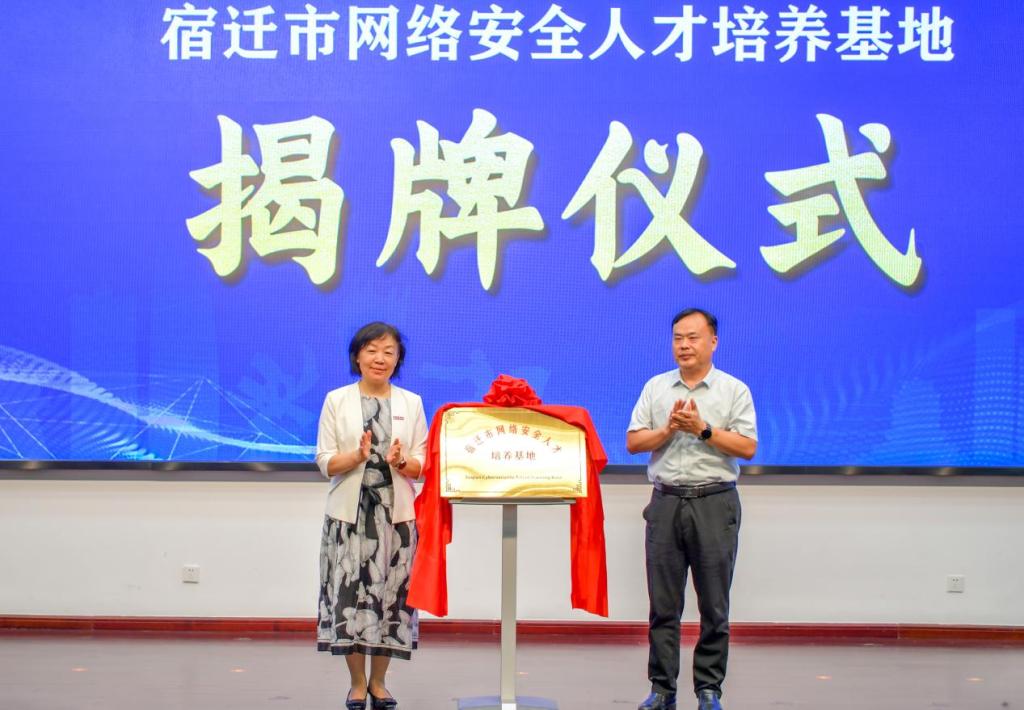 活动中,市委网信办负责人与张岩共同为“网络安全人才培养基地”揭牌,该基地将依托信息工程学院建设运行,成为宿迁市网络安全领域高素质应用型人才培养的重要平台。我院学生代表宣读了《网络和数据安全保护倡议书》,展现了我院学子积极投身网络安全建设的责任与担当。