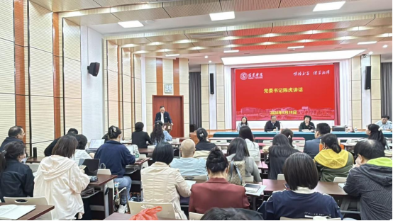 院党委书记陈虎传达了校党委书记徐德在学校教职工大会上的讲话精神,并以“团结奋进、重点突破、凝心聚力、再创辉煌”为题作总结讲话。他指出,新学期全体教职工要团结一致向前看,聚焦谋划“十五五”发展规划、突破硕士点建设瓶颈、推动师范专业认证、深化学风建设与师范人才培养、筑牢安全防线、营造清正学院生态六个方面,共同打造“有高度、有速度、有温度”的教师教育学院。