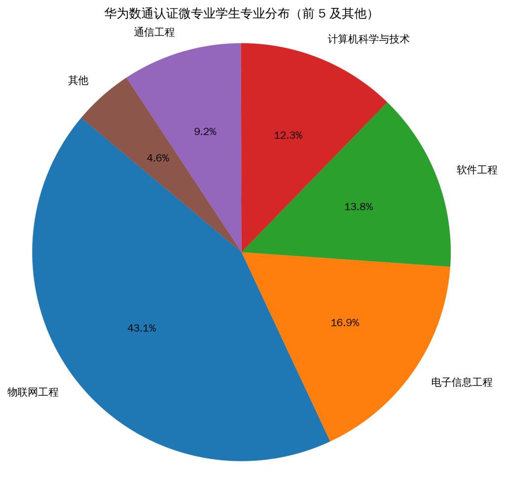 该微专业的开设,将领先的ICT认证课程融入高校人才培养体系,为学生就业增加重要砝码,也为宿迁地区ICT人才生态建设注入新活力。据了解,日前,华为数通认证微专业吸引了来自五个二级学院13个专业195名学生报名。其中,物联网工程专业的学生占比最大,接近总人数的一半。前五大专业(物联网工程、电子信息工程、软件工程、计算机科学与技术、通信工程)的学生总数达到186人,占总报名人数的95.4%,其他专业(人工智能、英语师范、信息与计算科学、自动化、电子商务、机械设计制造及其自动化、机械电子工程、金融科技)占比4.6%,呈现出明显的跨学院跨学科特点。跨学科学生的积极参与,体现了他们将领先的ICT技能与自身专业(如英语、金融、机械等)相结合,以塑造复合型知识结构、提升未来就业竞争力的强烈意愿。