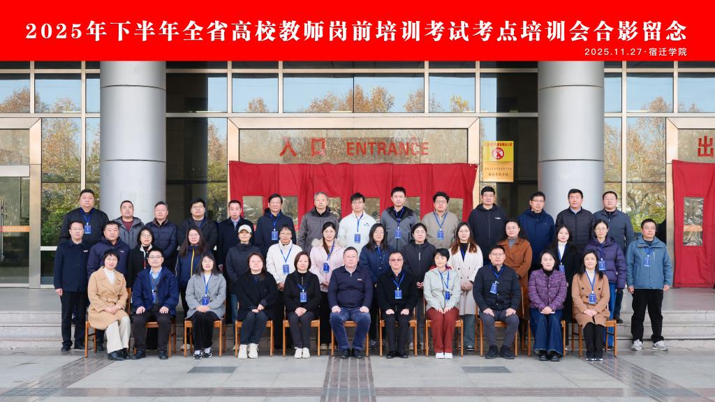 为贯彻落实省教育厅关于高校教师岗前培训的工作要求,提升各考点考试管理服务能力,11月26日—28日,由江苏省教育厅、江苏省高校师资培训中心主办,宿迁学院承办的“2025年下半年全省高等学校教师岗前培训考试考点培训”在我校顺利举行。江苏省教育厅教师工作处二级调研员许李军、省高校师资培训中心主任朱峥、副校长童毛弟出席本次培训。来自全省14个考点的岗前培训负责人、考务负责人及技术人员,宿迁考点各报名单位负责人等50余人参加了培训。