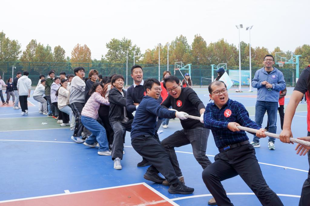 活动中,学院师生联队与企业代表队同场竞技,师生间的高效配合与企业代表的精湛球技相互碰撞,既展现了体育竞技魅力,更在协作中深化了情谊,诠释了平等交流的“从游”内涵。随后的师生趣味运动会同样精彩纷呈,动力火车、鼓动人心等五大团体项目各具特色。12人搭档背夹篮球绕障的“动力火车”彰显信任,8人协作颠球的“鼓动人心”凝聚合力,拔河项目更是以震天加油声将氛围推向高潮,师生并肩作战,默契在互动中升华。