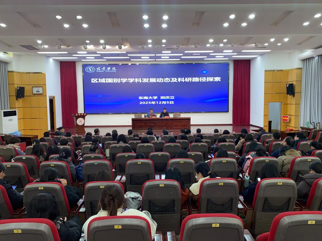 为精准把握区域国别学科发展前沿动态,明晰科研方向与实践路径,助力学院学科建设与人才培养提质增效,12月5日下午,外国语学院特邀东南大学田庆立教授在求索楼报告厅开展专题讲座。