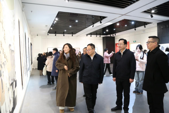 开幕式结束后,各位领导嘉宾移步展厅观展,近距离欣赏一件件优秀艺术作品,感受艺术与文化的独特魅力。此次展览的举办,不仅为广大艺术工作者和青年学子提供了交流展示的平台,更搭建了校地文化共建的坚实桥梁,让校地双方在文化传承与创新的赛道上同频共振。