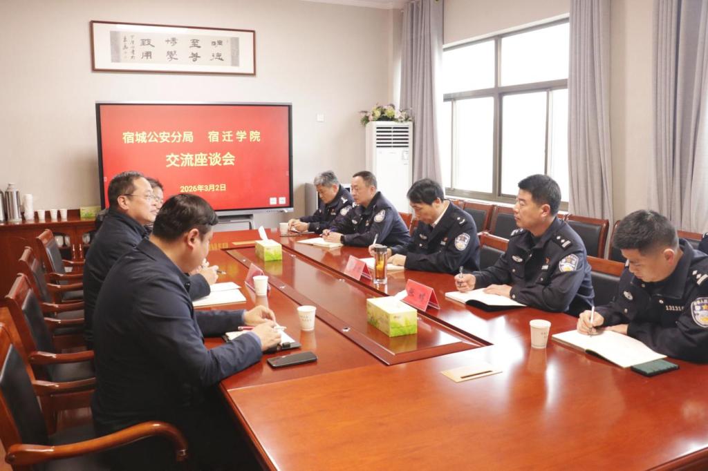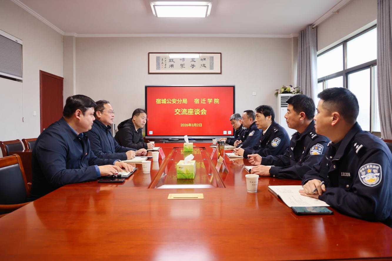 3月2日下午,宿迁市公安局党委委员、宿城区副区长、宿城分局局长蔡士君一行来校调研指导校园安全稳定工作,校党委常委、副校长、组织部部长许立春主持座谈会并陪同调研。