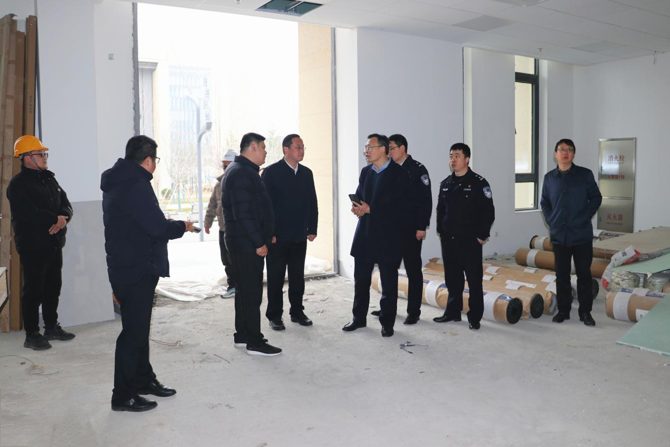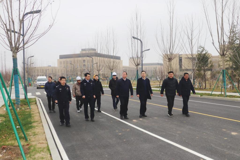 3月4日下午,校党委常委、副校长、组织部部长许立春带队赴新校区开展平安校园建设专项调研。宿迁市湖滨新区党工委委员、公安分局局长吴昊应邀前往新校区调研指导。