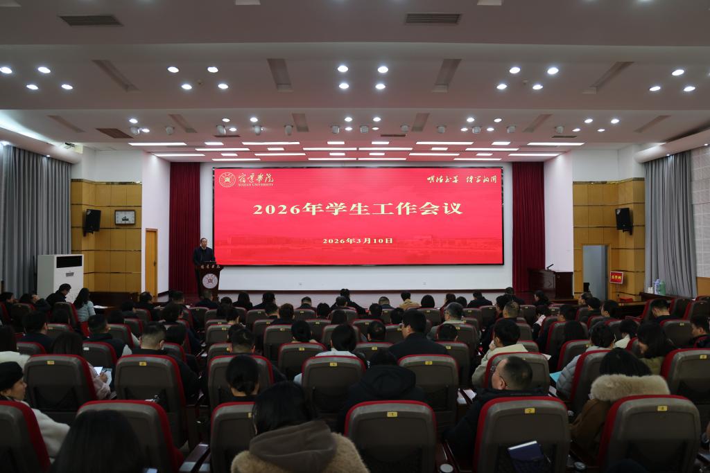 为进一步完善“三全育人”工作格局,持续深化“大思政”“大学工”工作理念,全面提升学生工作质量与合力,3月10日上午,我校召开2026年学生工作会议。校党委副书记侍旭出席会议并讲话,副校长许立春主持会议。各职能部门负责人、各二级学院相关领导,校企及家委会代表、全体辅导员参会。