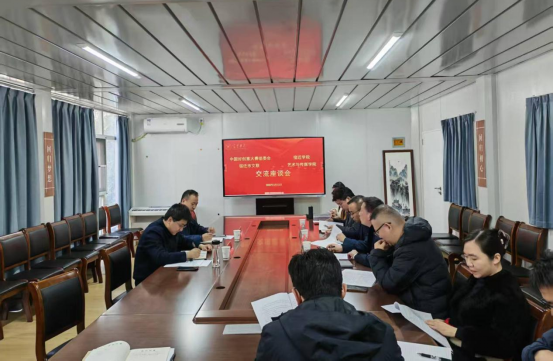 为深化产教融合、推动文创产业与白酒产业融合发展,助力中国白酒之都(宿迁)建设,3月13日,宿迁市文联副主席胡立权,北京国际设计周长三角联络处主任、江苏非凡智旅信息技术有限公司副总经理王文玉一行莅临艺术传媒学院就共同举办2026“梦之蓝”杯中国白酒之都(宿迁)创意设计大赛暨中国好创意洋河专项赛开展专题洽谈。学院领导班子、系主任及双创负责老师参加会议。