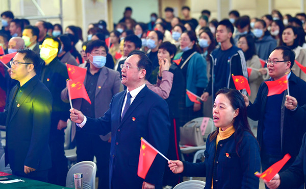 “五星红旗迎风飘扬,胜利歌声多么响亮;歌唱我们亲爱的祖国,从今走向繁荣富强.......”活动最后,现场观众全体起立,热情挥动起手中的国旗,共唱《歌唱祖国》。伴随着激昂的歌声、舞动的国旗,“学习强国”江苏学习平台线下系列活动——“学习打卡我来了”暨宿迁学院“三问九思”专场活动精彩落幕。
