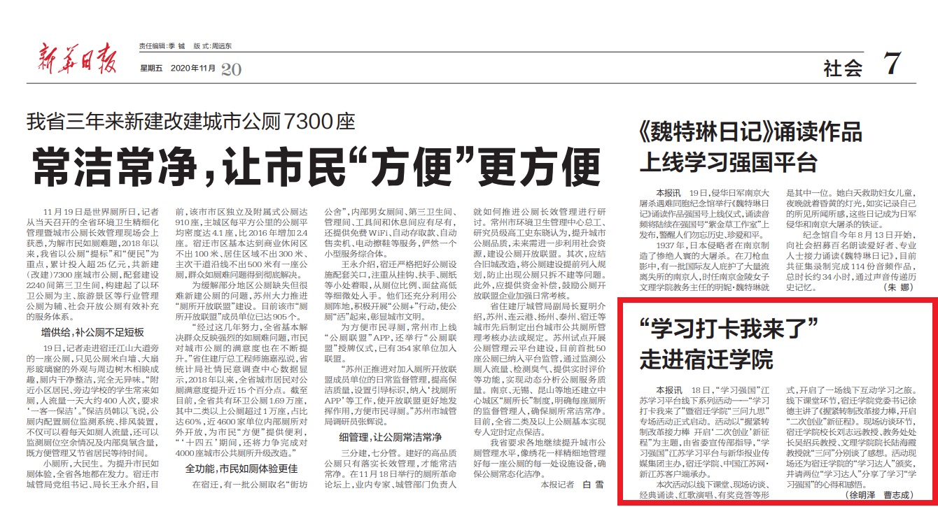 《新华日报》:“学习打卡我来了”走进宿迁学院