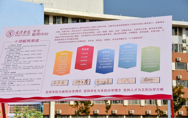 仪式上,首批进驻学生服务中心的5个部门主要负责人上台签署了服务承诺书。(曹志成)