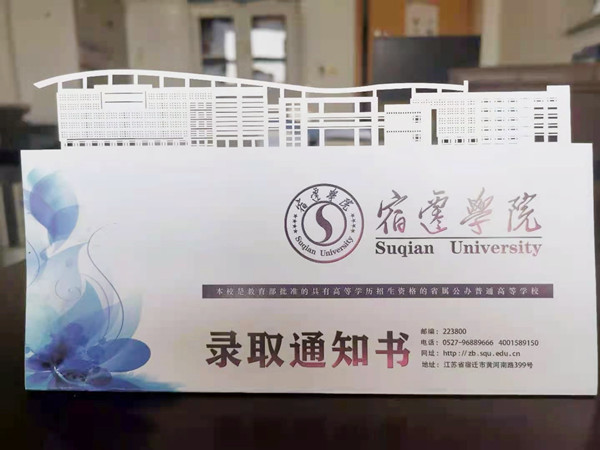 中国江苏网7月30日宿迁讯 宿迁学院首批3498份录取通知书已经于日前发出,与往年不同的是,今年的录取通知书上有“一座”镂空的教学楼。据该校招生就业办公室有关负责人介绍,这是今年宿迁学院为学生办实事的创新实践之一,设计者为本校教师,原型为二号教学楼。由于镂空部分细密,专门到无锡一家公司制作。他说,其中的寓意是金石可镂,希望新一届学子的青春在宿迁学院飘逸,专业在宿迁学院深深扎根,心灵在宿迁学院皈依。(曹志成)
