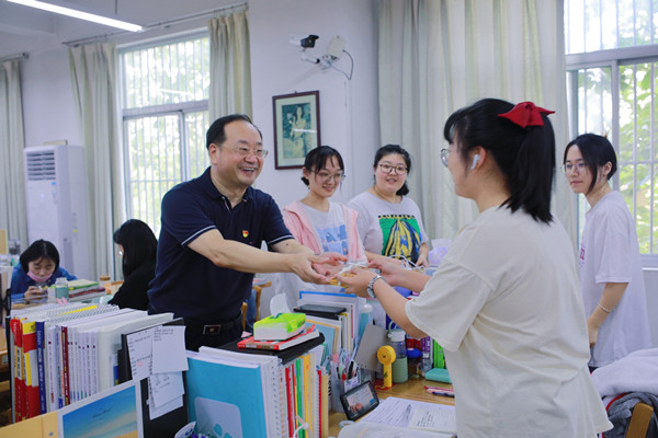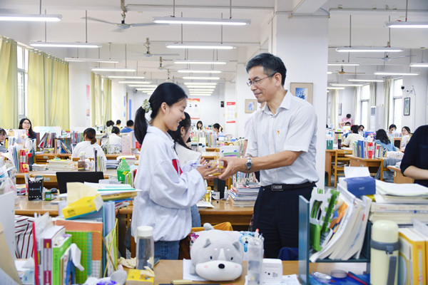 为了让留校学生在中秋佳节享受家的温暖,校领导走进求索楼给同学们送去学校专门定制的带有校徽标识的月饼,寓意师生携手并进,共圆好梦。(文/图 曹志成 王菁)