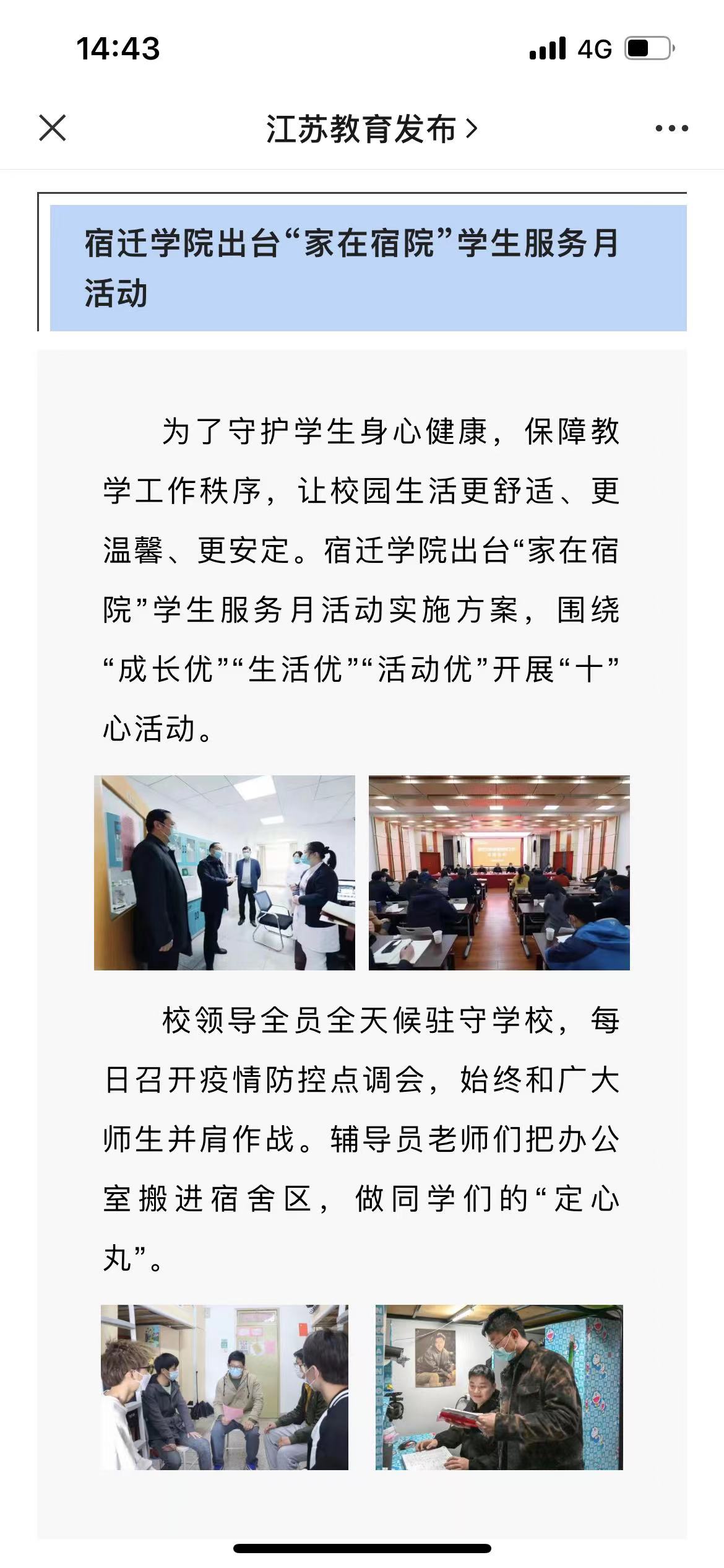 江苏教育发布:宿迁学院出台“家在宿院”学生服务月活动