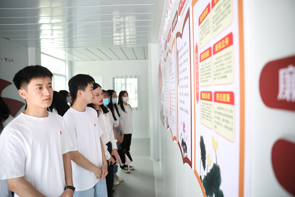 活动中,毕业生代表还参观了廉政文化长廊,在清风墙上签下自己的姓名,获赠寓意“扣好廉洁从业第一粒扣子”的特制钥匙扣。(曹志成 李严严)