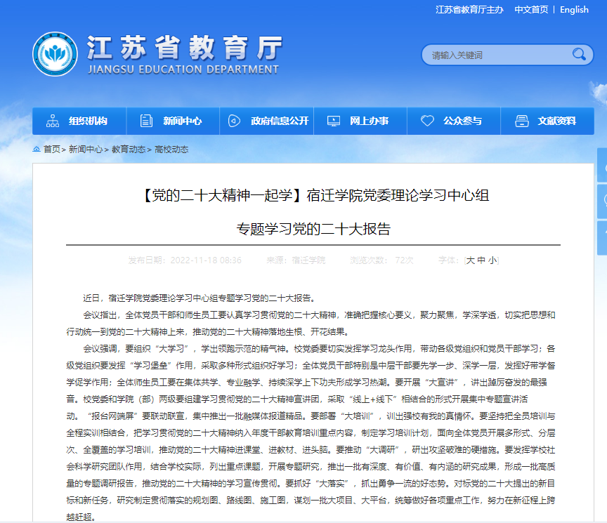 【党的二十大精神一起学】宿迁学院党委理论学习中心组
