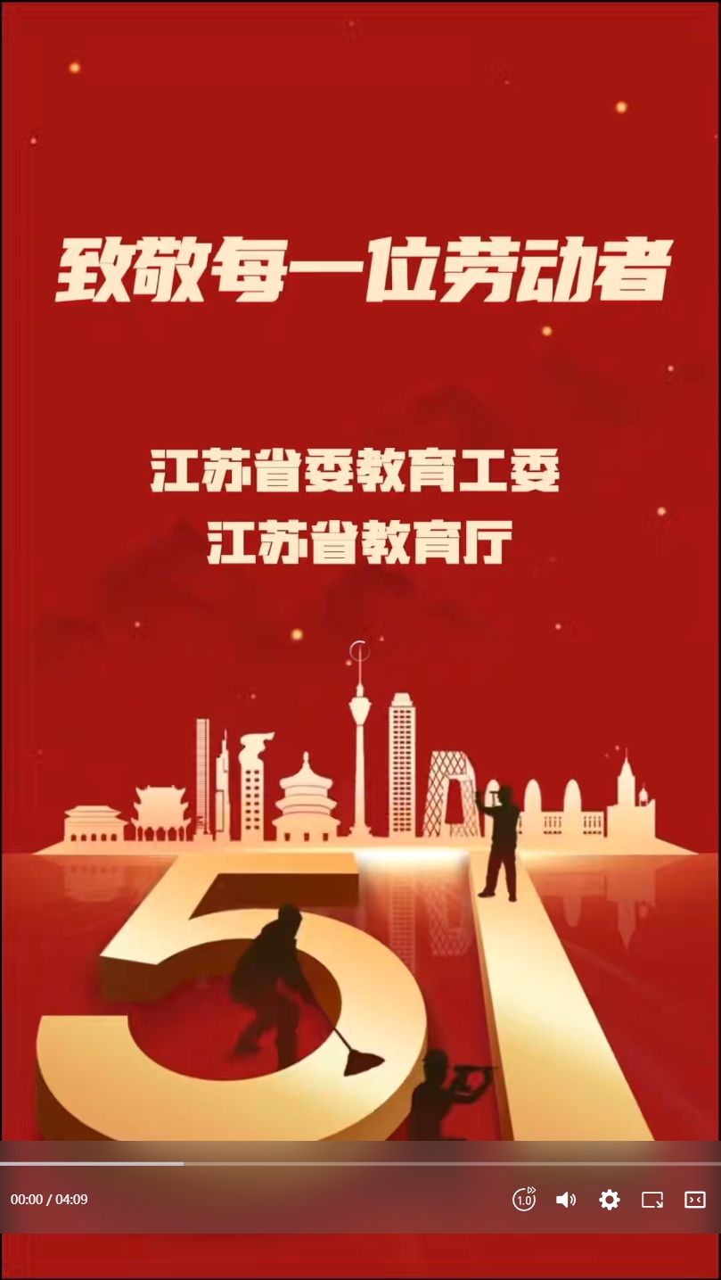 江苏教育发布·微信视频号:#节日 劳动是生活里的光,江苏省委教育工委、江苏省教育厅致敬每一个努力的你,五一劳动节快乐!