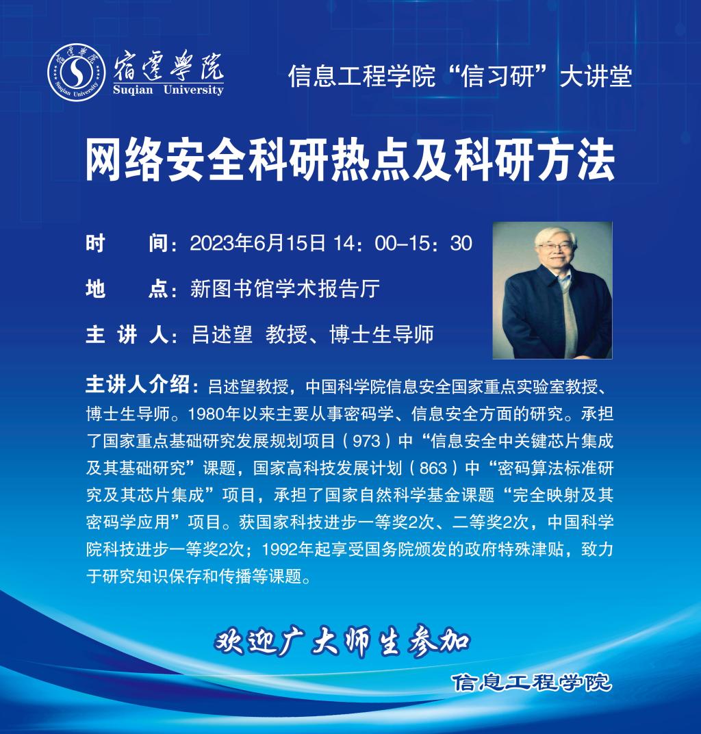 信息工程学院“信习研”大讲堂:网络安全科研热点及科研方法