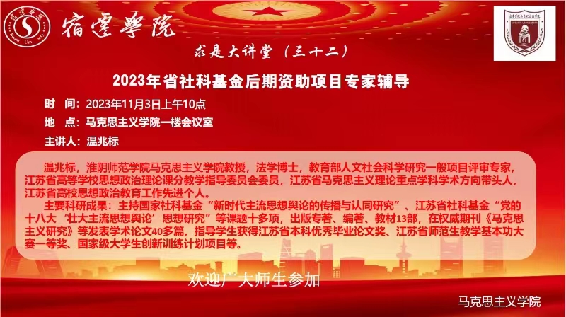 马克思主义学院求是大讲堂(三十二):2023年省社科基金后期资助专家辅导